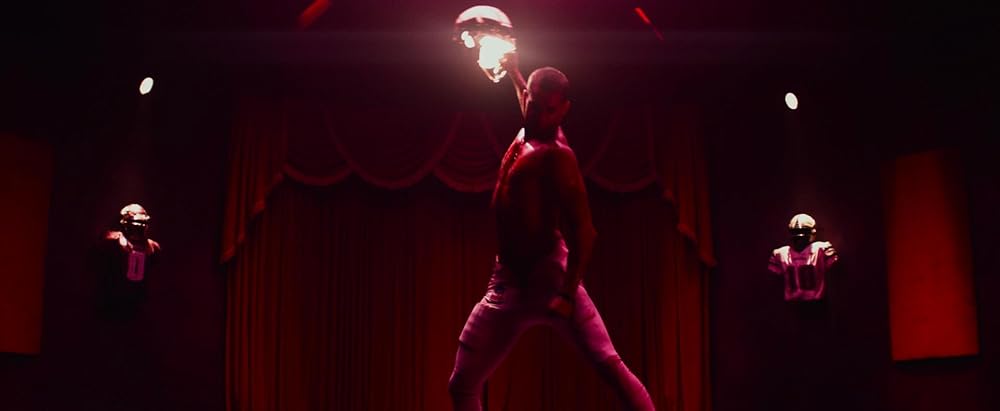 Ovo je svakako film atmosfere, vizualno toliko drugačiji nego što ste navikli kada je u pitanju horor. Ta vizualnost posebno dolazi do izražaja na velikom platnu jer stvara posebni osjećaj klaustrofobije koje se najviše pribojavam ne samo na filmu već i u stvarnom životu. Nema mi ništa gore nego kad gledam neki horor, a da u isto vrijeme imam dojam kao da sam zaglavljen u uskom liftu, pa makar mi društvo pravila i Julia Fox koja je u filmu prava femme fatale. E, upravo mi je to priuštio ovaj film. Priča koju obrađuje “Him” poprilično je univerzalna, a što se najviše ocrtava upravo kroz putovanje na koje bismo svi trebali krenuti, barem ako imamo ambiciju biti uspješni u onome čime se bavimo. “Him” nas suočava s pitanjima koliko smo spremni naporno raditi da bismo došli do cilja. Što je sve potrebno da bismo postali uspješni jako je dobro prikazana kroz psihologiju radnje, likova, ali i cjelokupne vizualnosti filma. Sve to skupa bilo je u savršenoj sinkronizaciji. Priča i razvoj likova u velikoj su me mjeri podsjetile na grčke tragedije, a što je opet usklađeno kroz brutalnost sporta, posebice američkog nogometa, posebno dva glavna lika koji i djeluju kao moderni gladijatori. Dva glavna protagonista, Cameron i Isiah, karakterno su u potpunosti drugačiji, no i njihov odnos je samim time još kompliciraniji. Isaiah, u nevjerojatno uvjerljivoj izvedbi talentiranog Marlona Wayansa, djeluje kao komadić puzzle koja nedostaje mladom i perspektivnom Cameronu. Ta dinamika između njih dvojice jako se dobro uklopila unutar sportske drame i horor žanra, a što je i samom redatelju omogućilo da se poigrava malo s gledateljima, ubacujući u taj koktel sastojke koje će nas omamiti ali u kojima ćemo svejedno znati uživati.